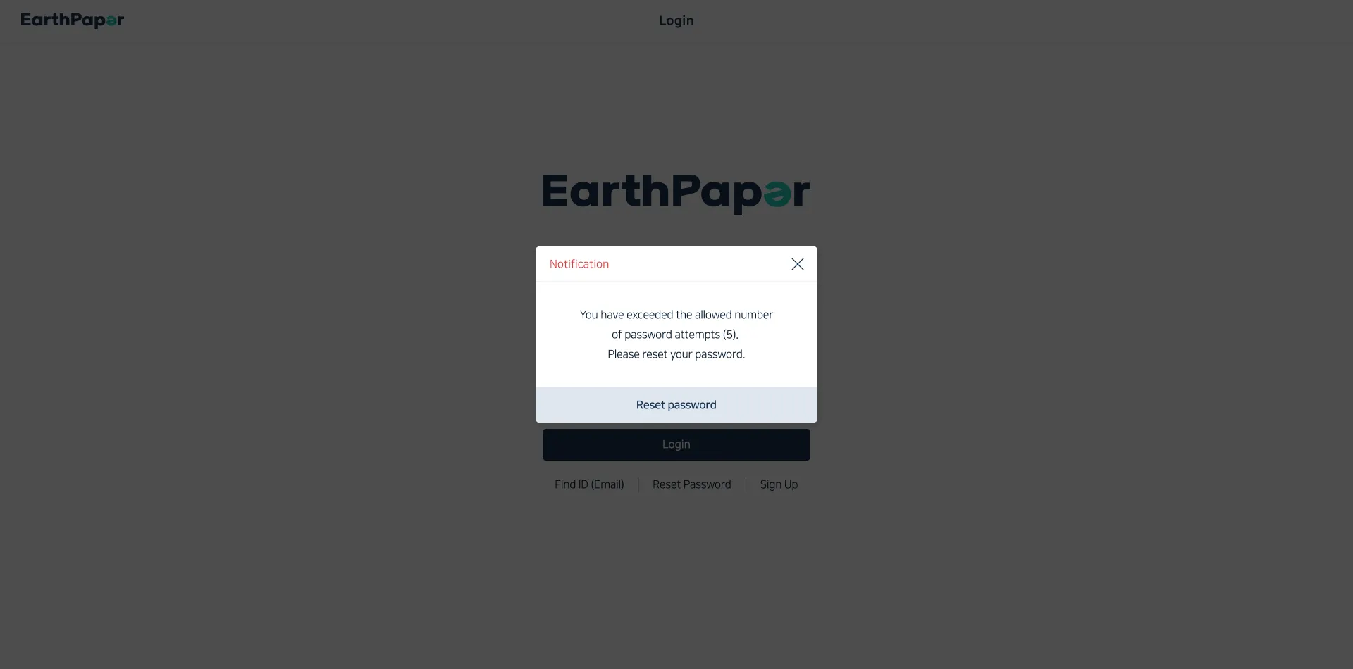 To reset your password, click the 'Reset Password' button on the EarthPaper login page.