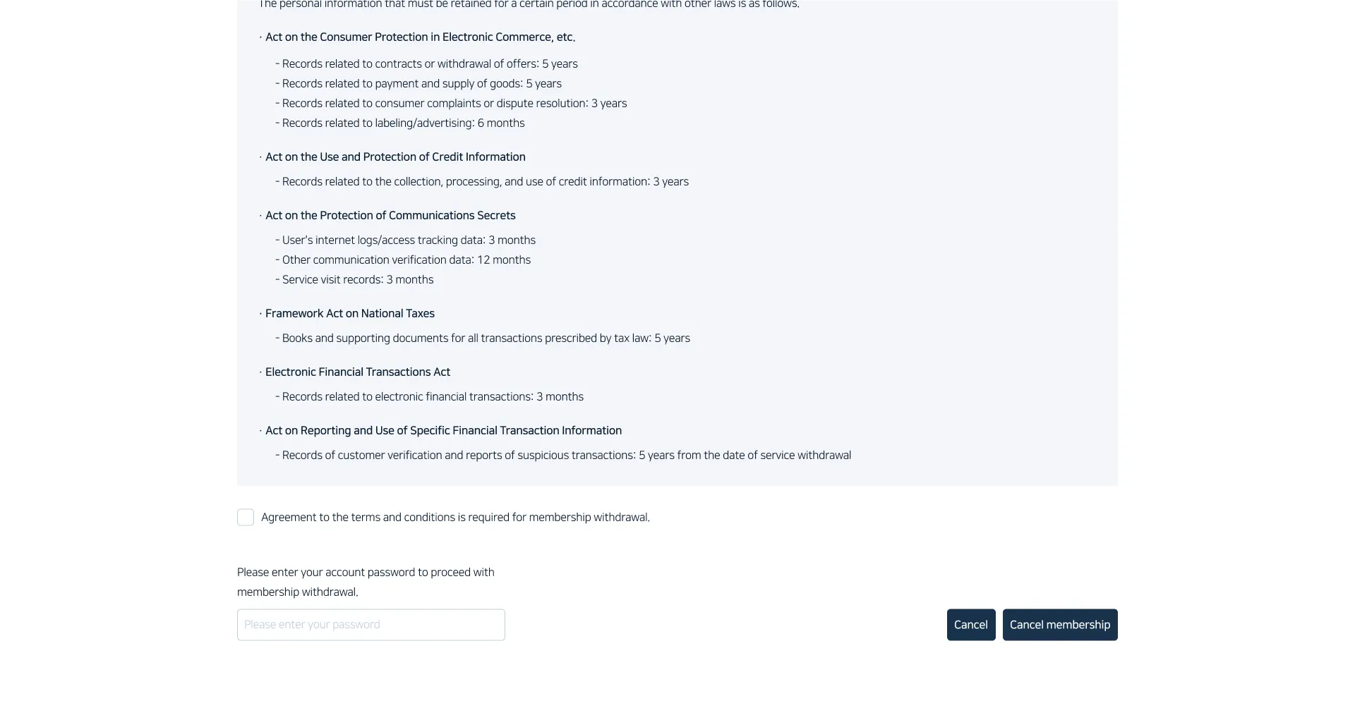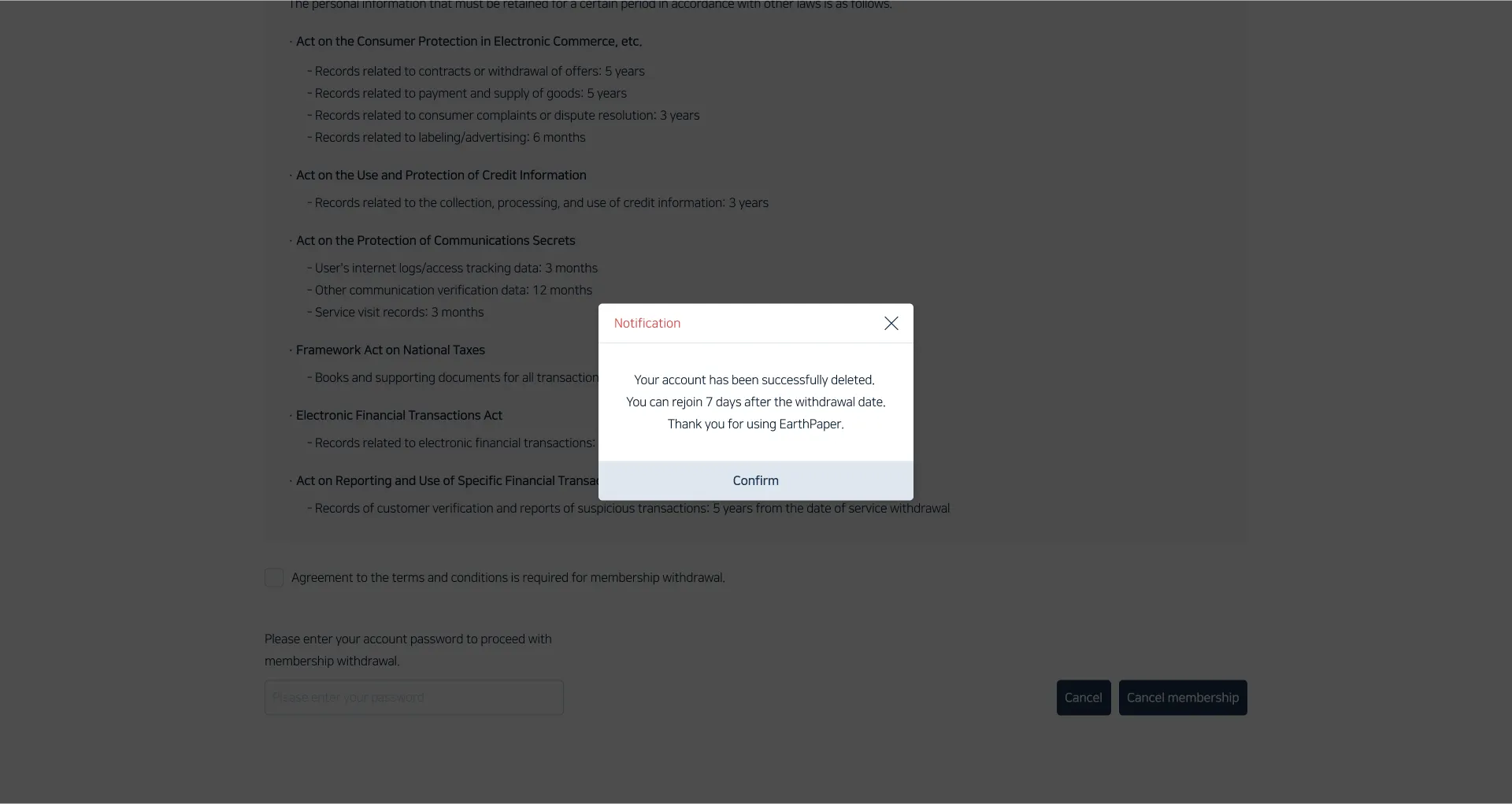 After agreeing to the terms, enter your account password and click the 'Close Account' button.